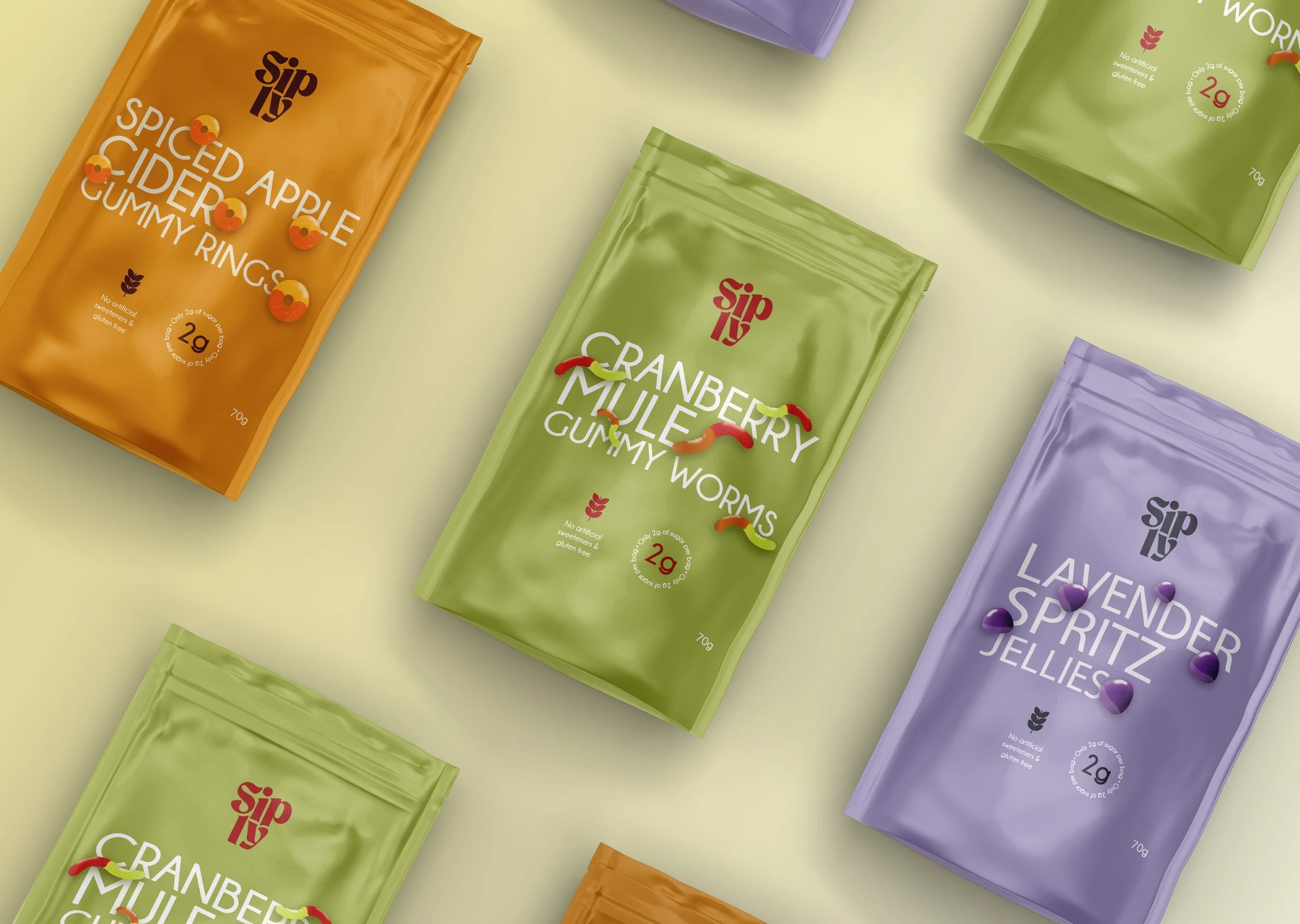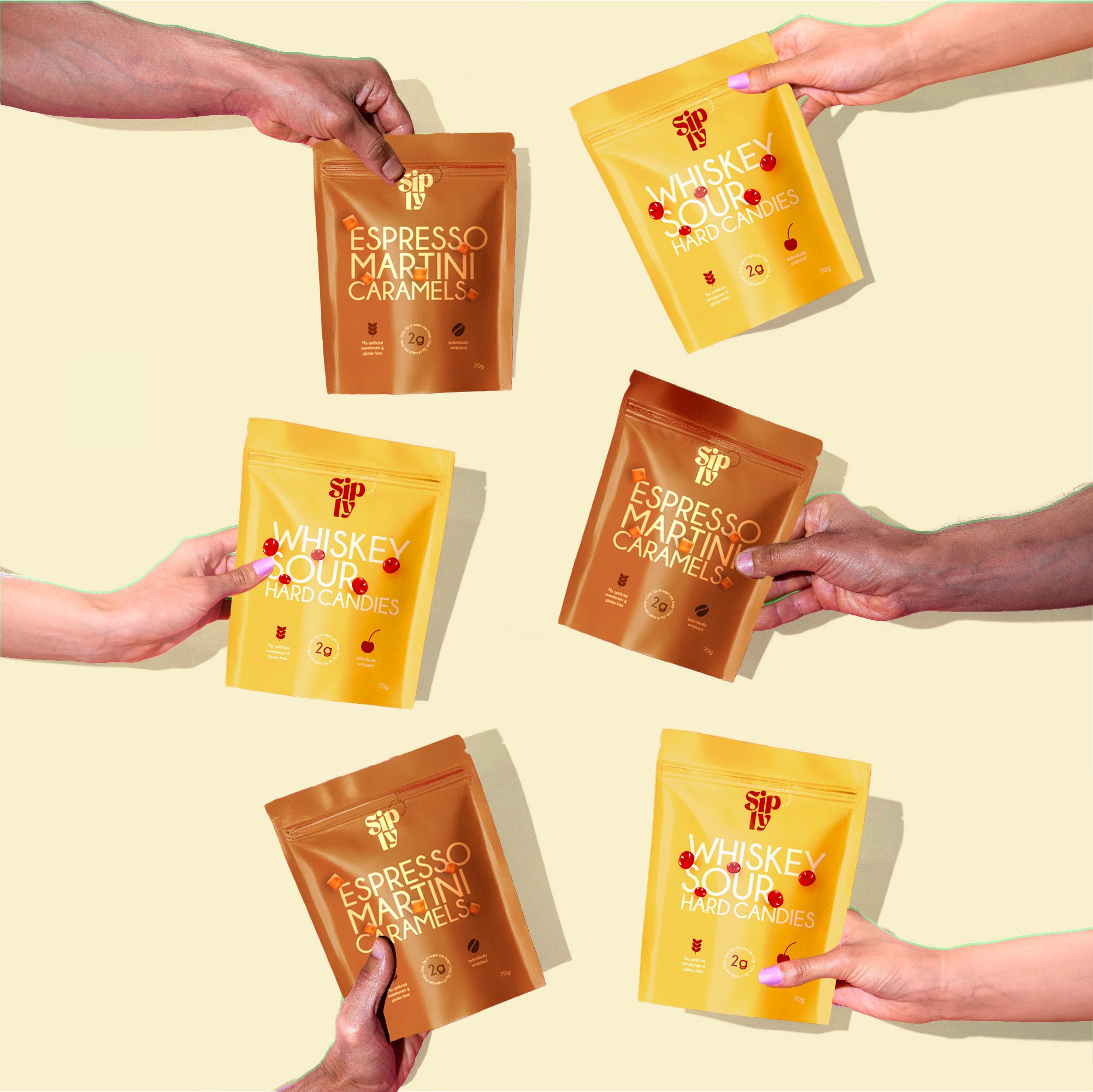 A vibrant brand concept for an organic treat company designed to stand out within the expectations of the category. Siply is rooted in authenticity, joy, and connection, offering