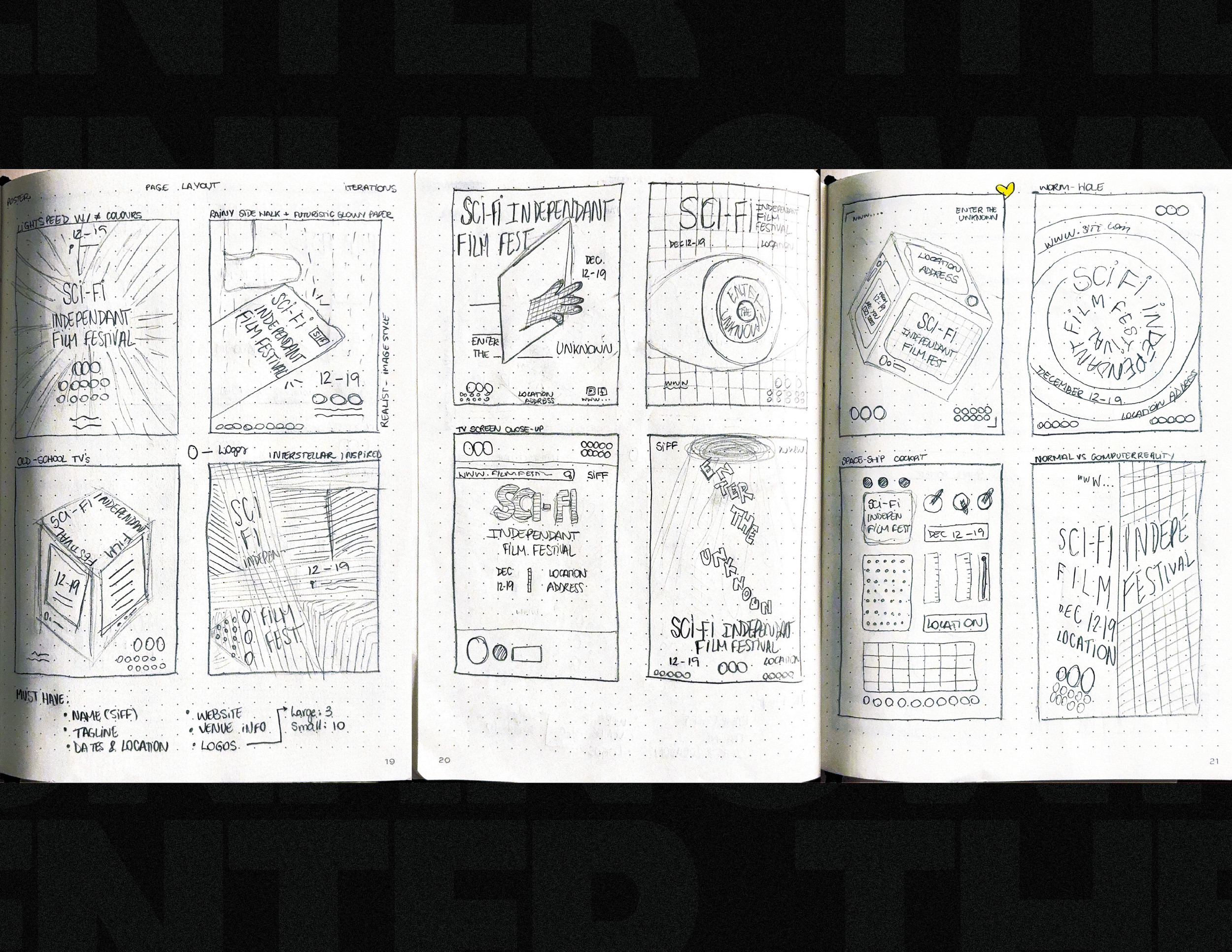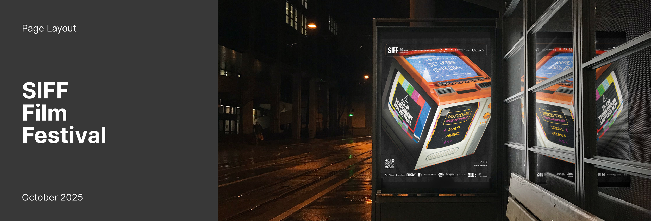A poster designed for a fictional sci-fi film festival, created as part of a project exploring both print and digital applications.