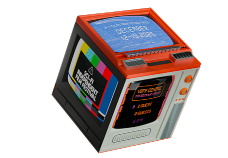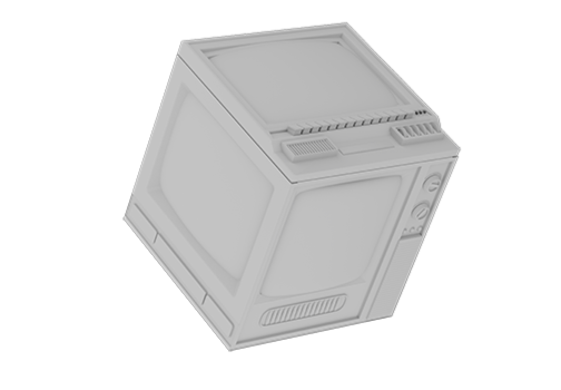 The concept centres around a custom 3D object, a three-sided vintage television, modelled in Blender and styled to evoke the visual language of retro science fiction.