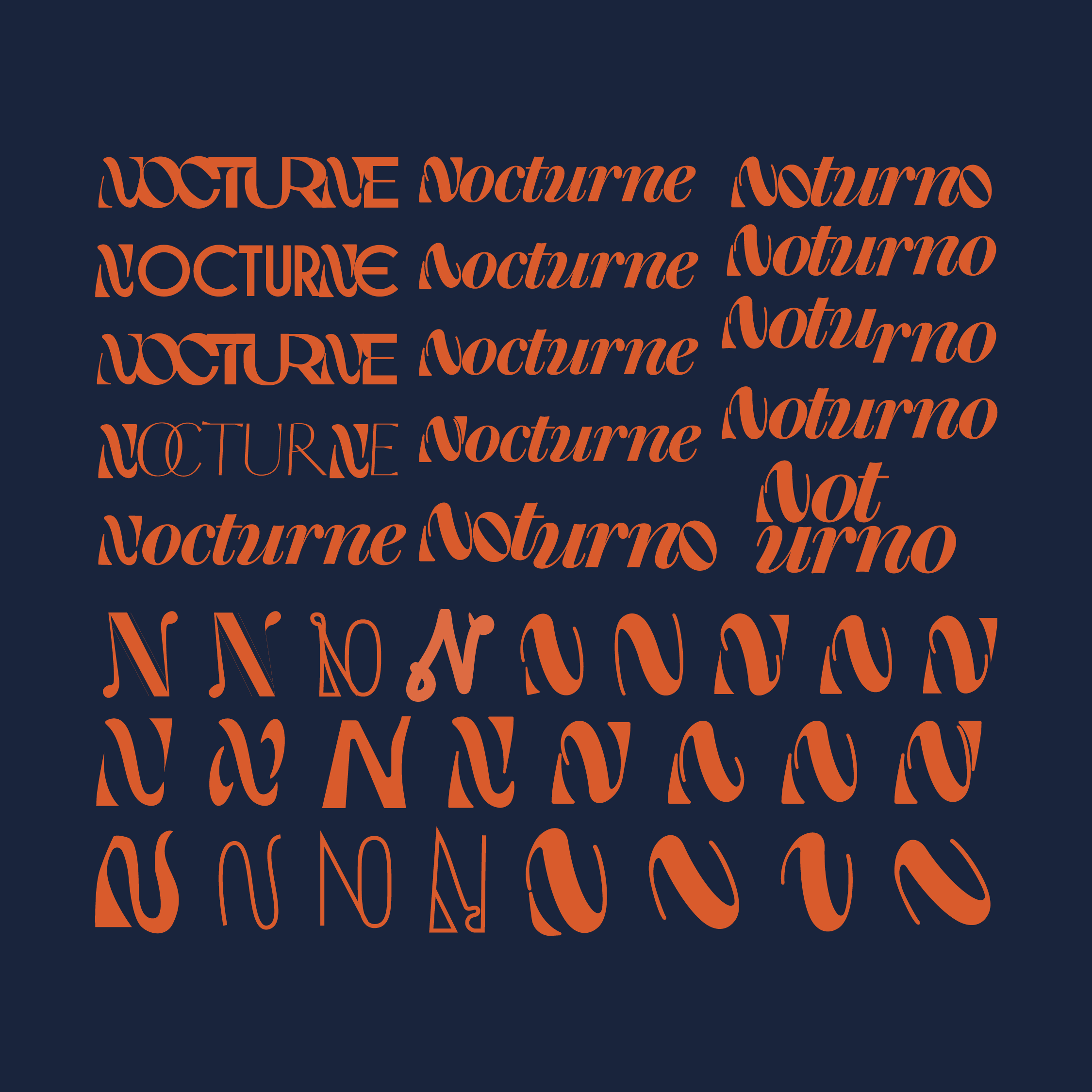of the initial “N,” using it as a foundation to test how subtle shifts could change the tone. Exploring variations in curves versus sharp edges revealed how small typographic decisions can create