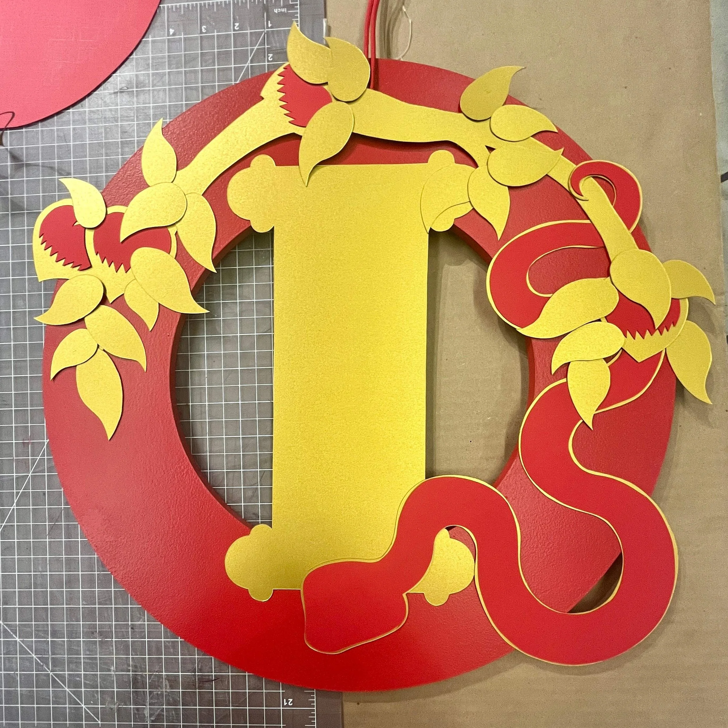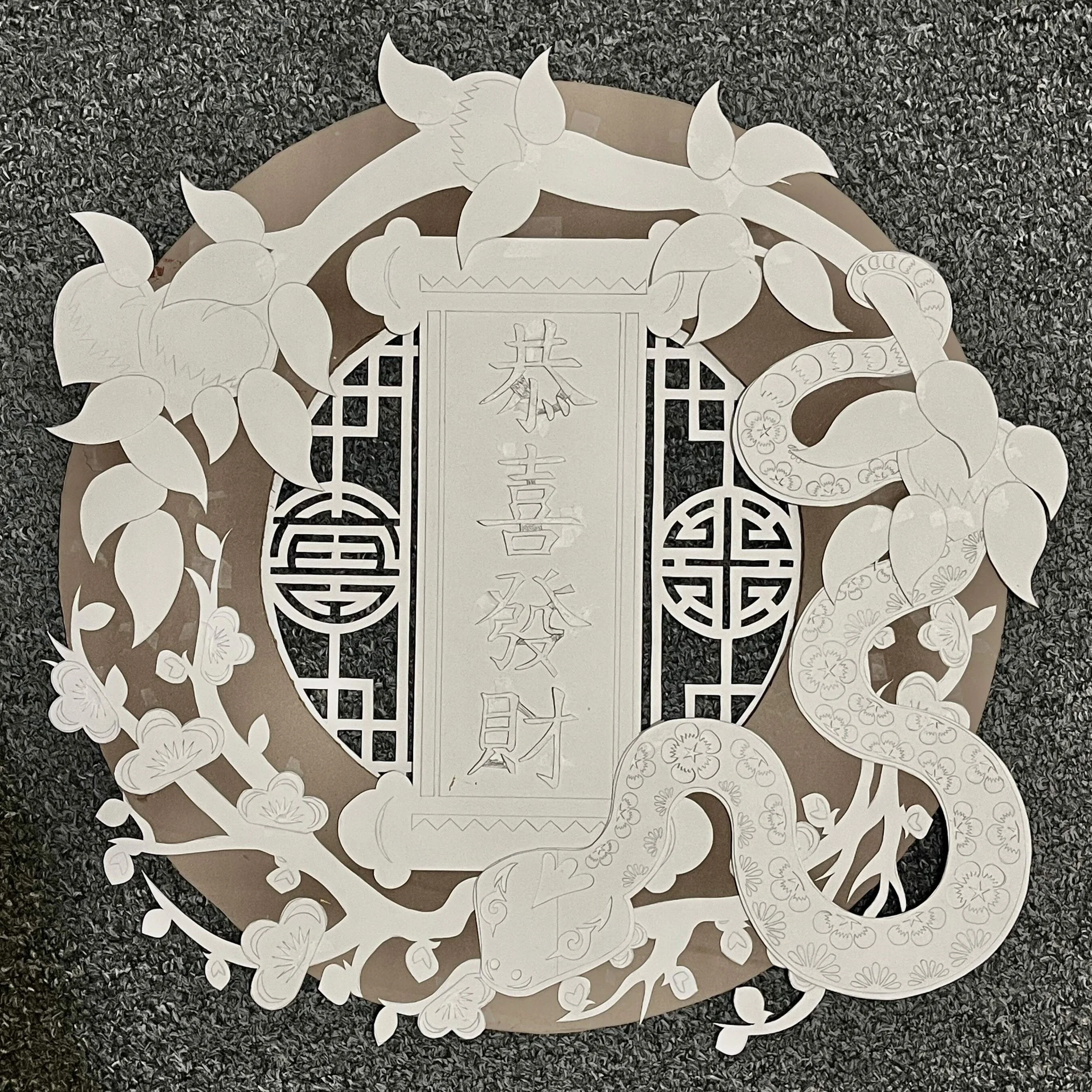 Objective: Researching the multitude of meanings held within the visual cliches and motifs of Lunar New Year, hand craft a decorative wreath executed in traditional Asian papercutting techniques.