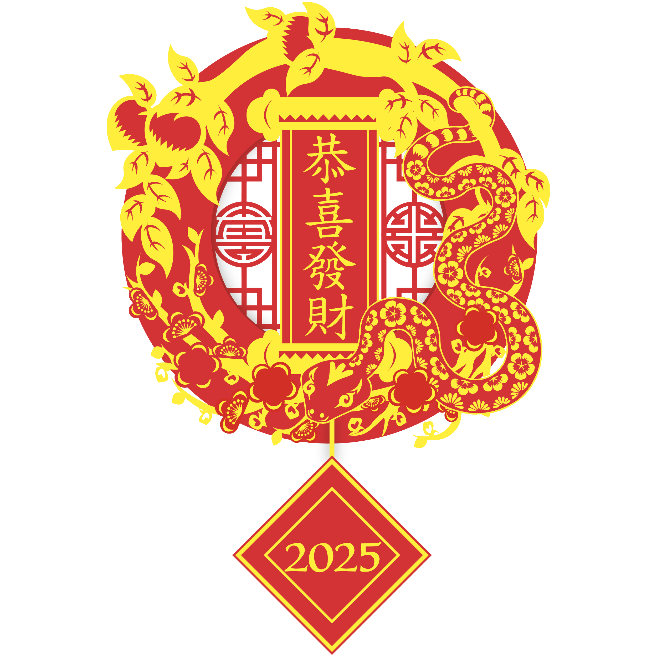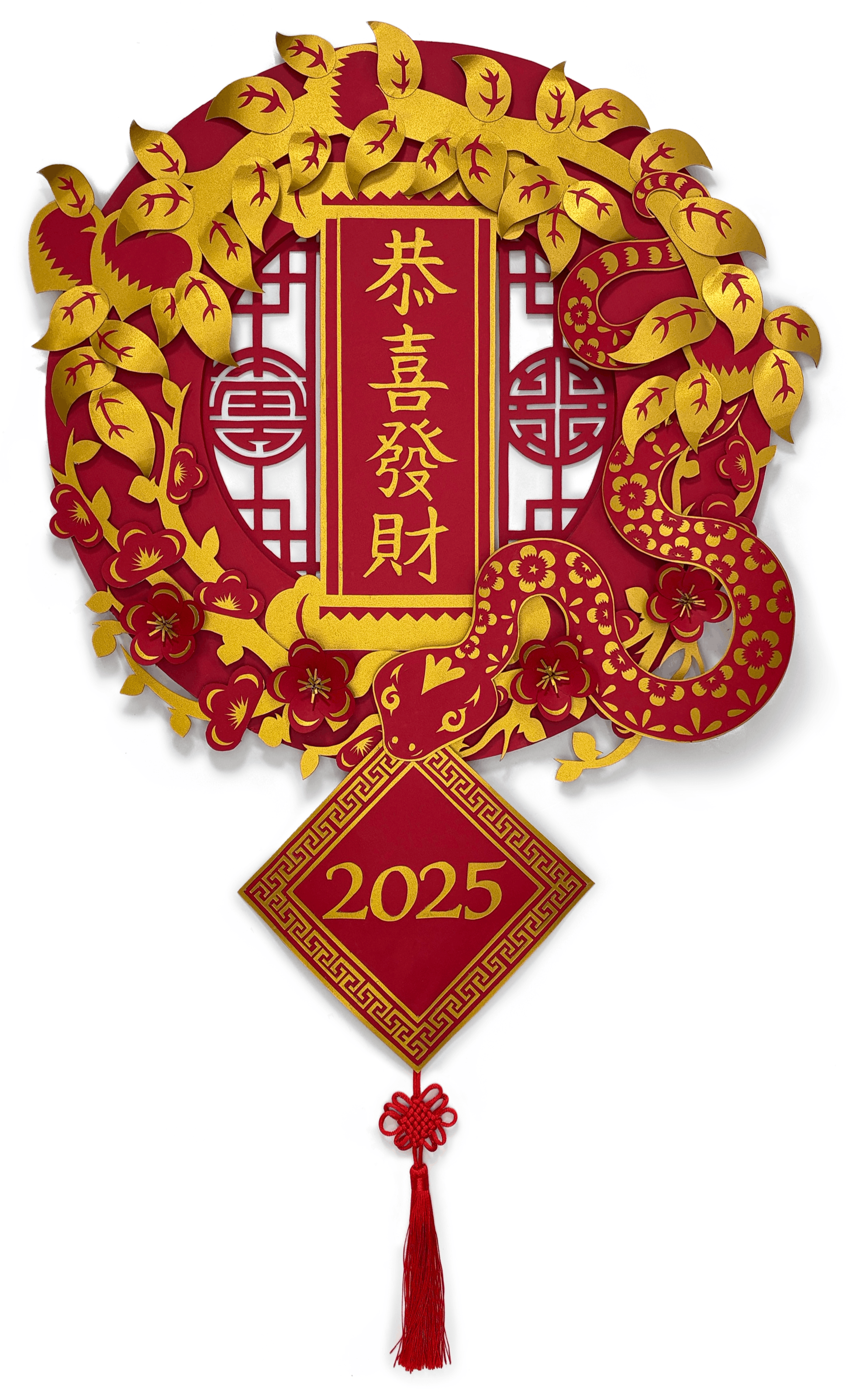 The wreath is centred around the narrative of a snake that journeys to gather symbols of good fortune, assembling them into a wreath to help people face the upcoming year.