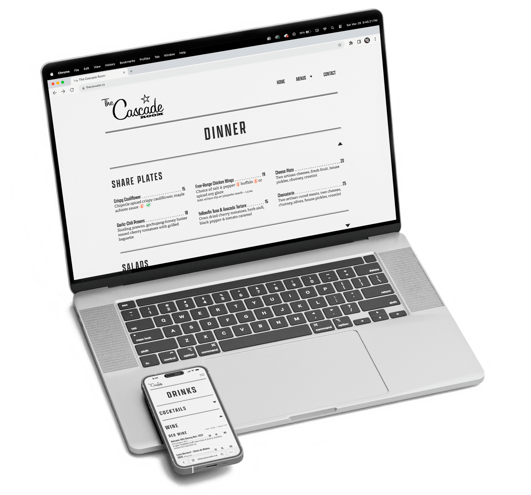 For the digital version, the menu was separated into two pages, dinner and drinks, to simplify navigation and reduce visual clutter. Within each page, menu categories are organized as dropdowns, allowing users to expand only the sections they need. This keeps the layout clean and works well on mobile, where space is limited.