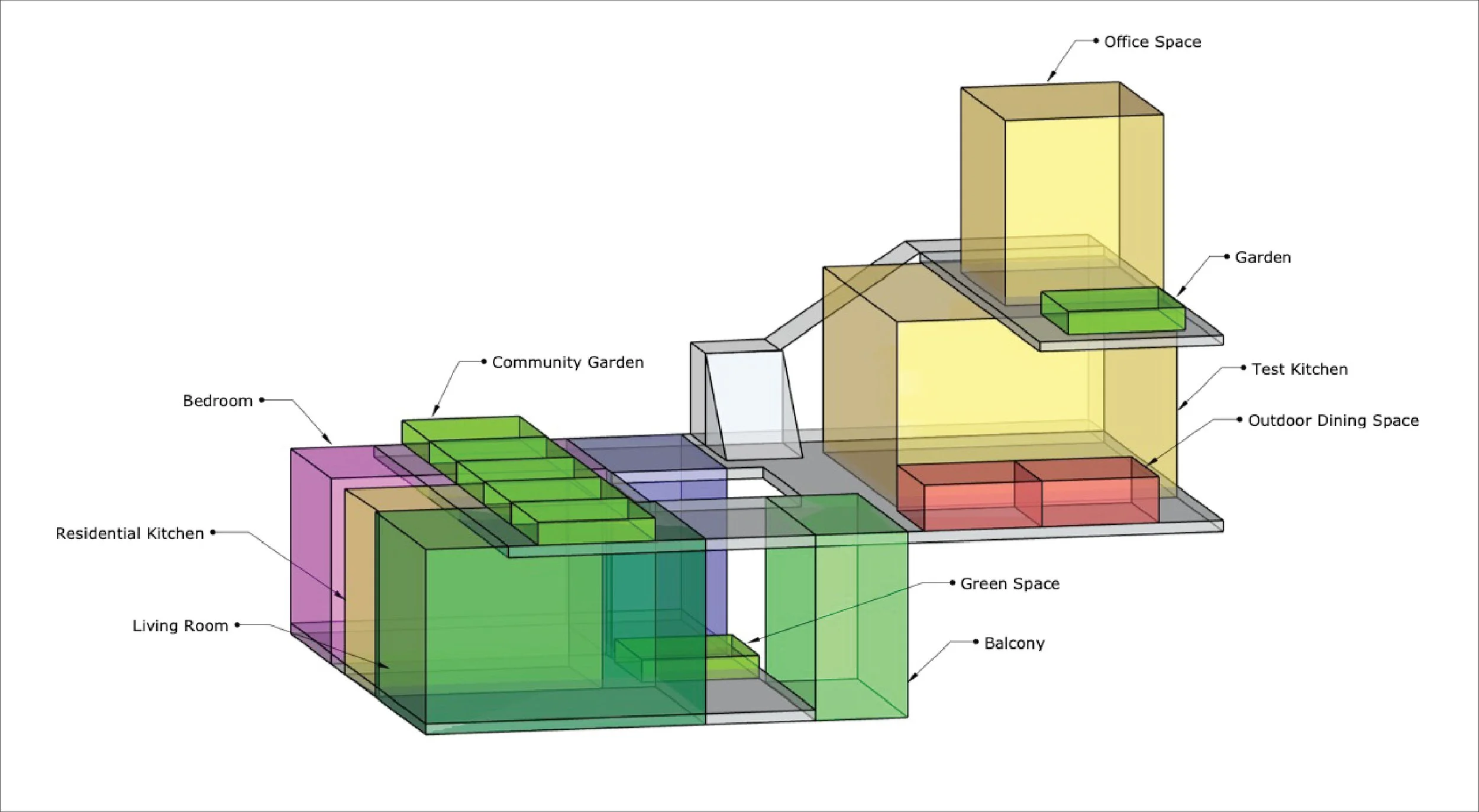 The program intention was to bring a commercial kitchen and garden to the community as we move towards our gentle densification and loss of space. The Test Kitchen connects residents to participate in cooking classes, tastings, and even small events. Residents can learn about cooking, nutrition, and sustainability. There is an area for outdoor dining in front of the Test Kitchen to encourage the use of entertaining and enjoyment of the outdoor space. The area for gardening is spacious and situated on the upper part of the building to ensure there is sun year-round for the garden to thrive.
